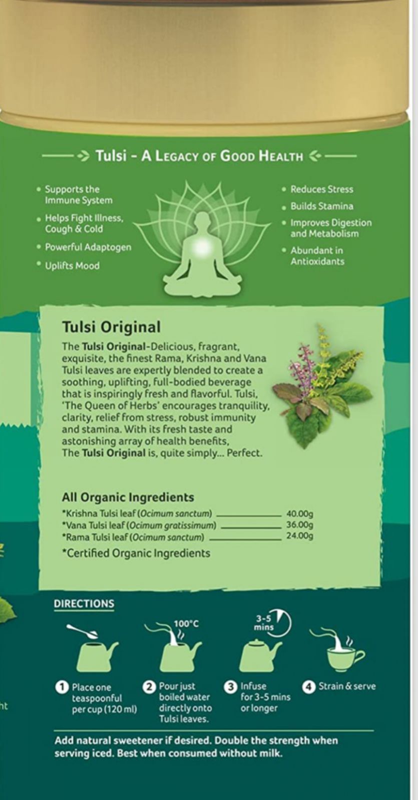 tulsi original,Tea,Organic Tea,Immunity Booster, Superfood, Instant Make,Healthy Drink, Energy Drink, Ready to Drink Tea, Organic Products, Organic Grocery,Certified Organic Products,